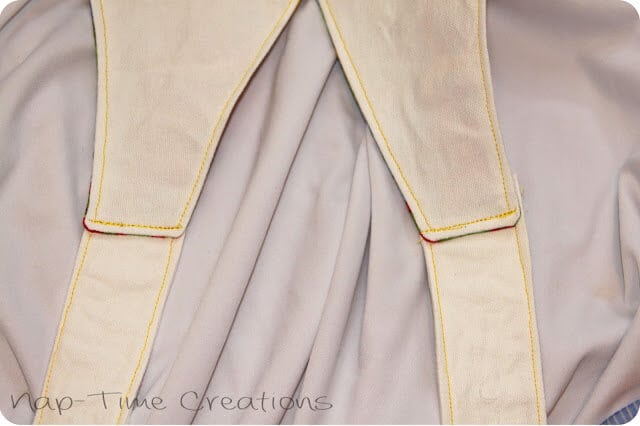 12. Sew straps around, turn and topstitch. Can use two of the same fabric, or one side with lining fabric if desired.