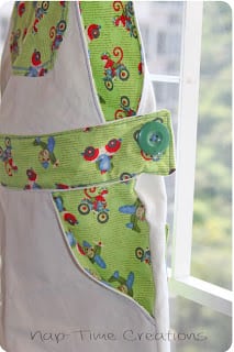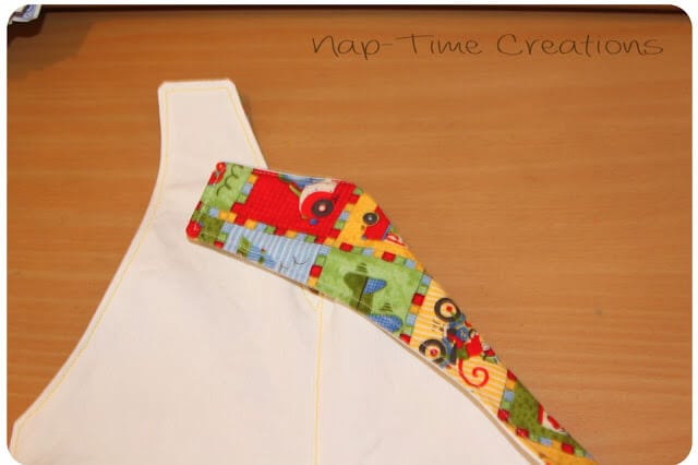 5. Sew bib top, turn, topstitch. Finish bottom edge.