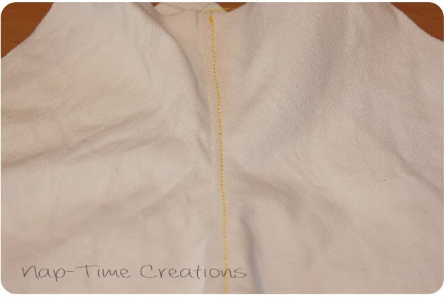 8. take back lining. Sew back center seam. Finish the bottom edge.