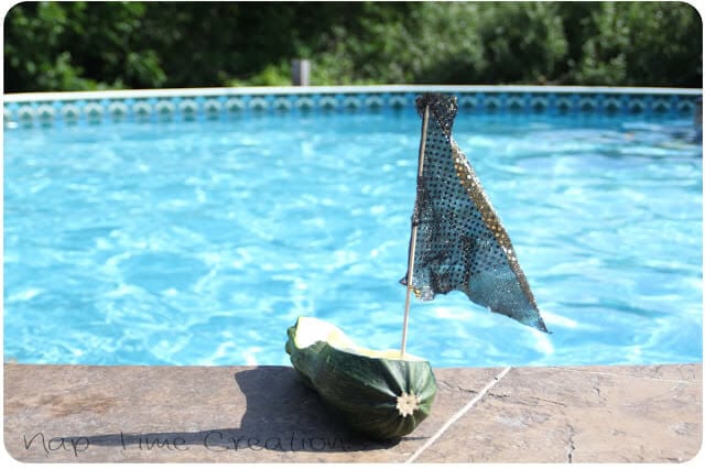 We sailed our boats in the pool, but a small stream or creek would be so fun for racing… Even a baby pool would be fun though to see the zucchini boats float around.