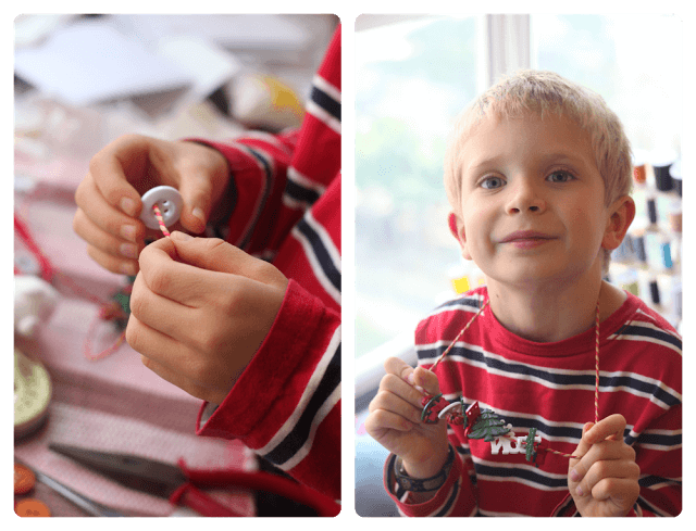 My kids generally don’t want to join in with my crafting, but when they do I’m happy to have us work side-dy-side. On this afternoon, while I was working on the animal garland, my son Jack was busy stringing beads as well… I love these moments…