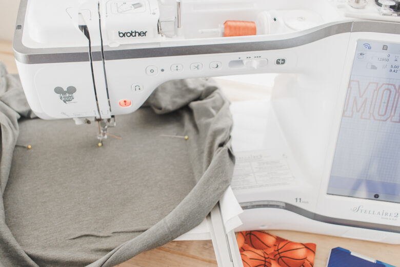 inside: learn how to make this fun Basketball mom shirt with applique. Cute applique project to make for basketball season with your embroidery machine. Supplies and tutorial.
