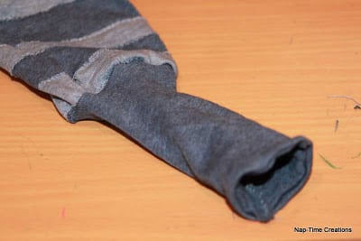 Make a 6 inch cuff. I used t-shirt material, but I think ribbing would work a bit better. You want it to be a pretty tight cuff.