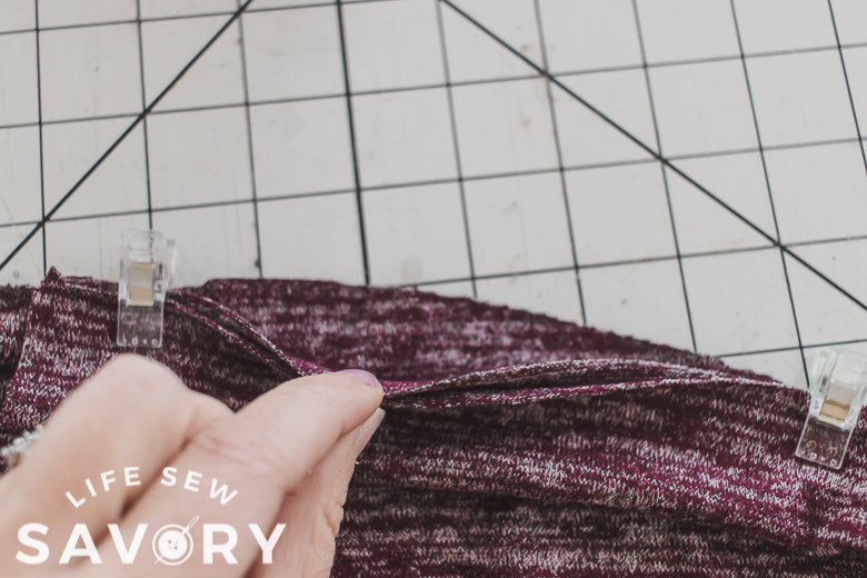 Just like in the video I started at the back bottom with my band. Stretch just slightly and clip the band all the way around the outside of the cardigan. {again – see this in action on the video}