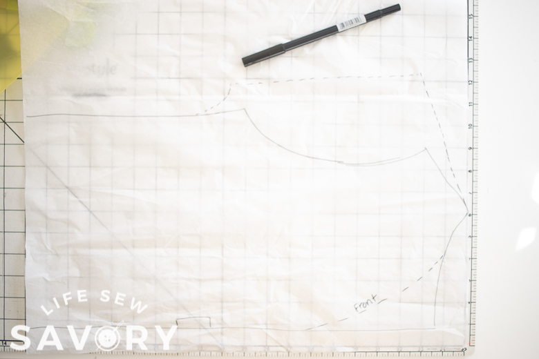 You also will curve the top at the neckline and bottom at the waist for the band.