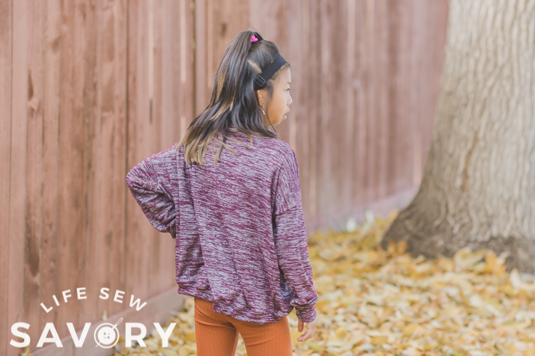 Let’s take a closer look at these cozy tops I’ve been sewing lately. I sewed two versions for Rose and one for myself. All the fabric seen here is from Sincerely Rylee Fabric.