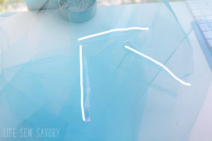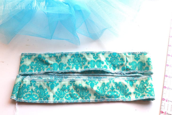 Cut the FOE 1″ SHORTER than your child’s waist {where the tutu will sit} It will be stretched a bit when sewing so we are making it smaller than the waist measurement.