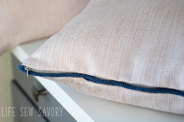 I also made an envelope style pillow with piping on the sides. You can find my envelope pillow tutorial here. What would you make for your home with Waverly Design Series at Joann?