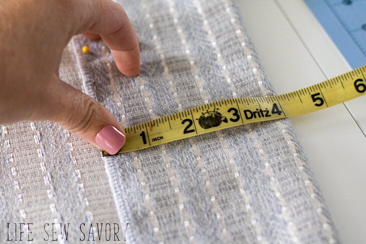 I then hung the curtains to mark the bottom hem. Sew where you marked the hem.