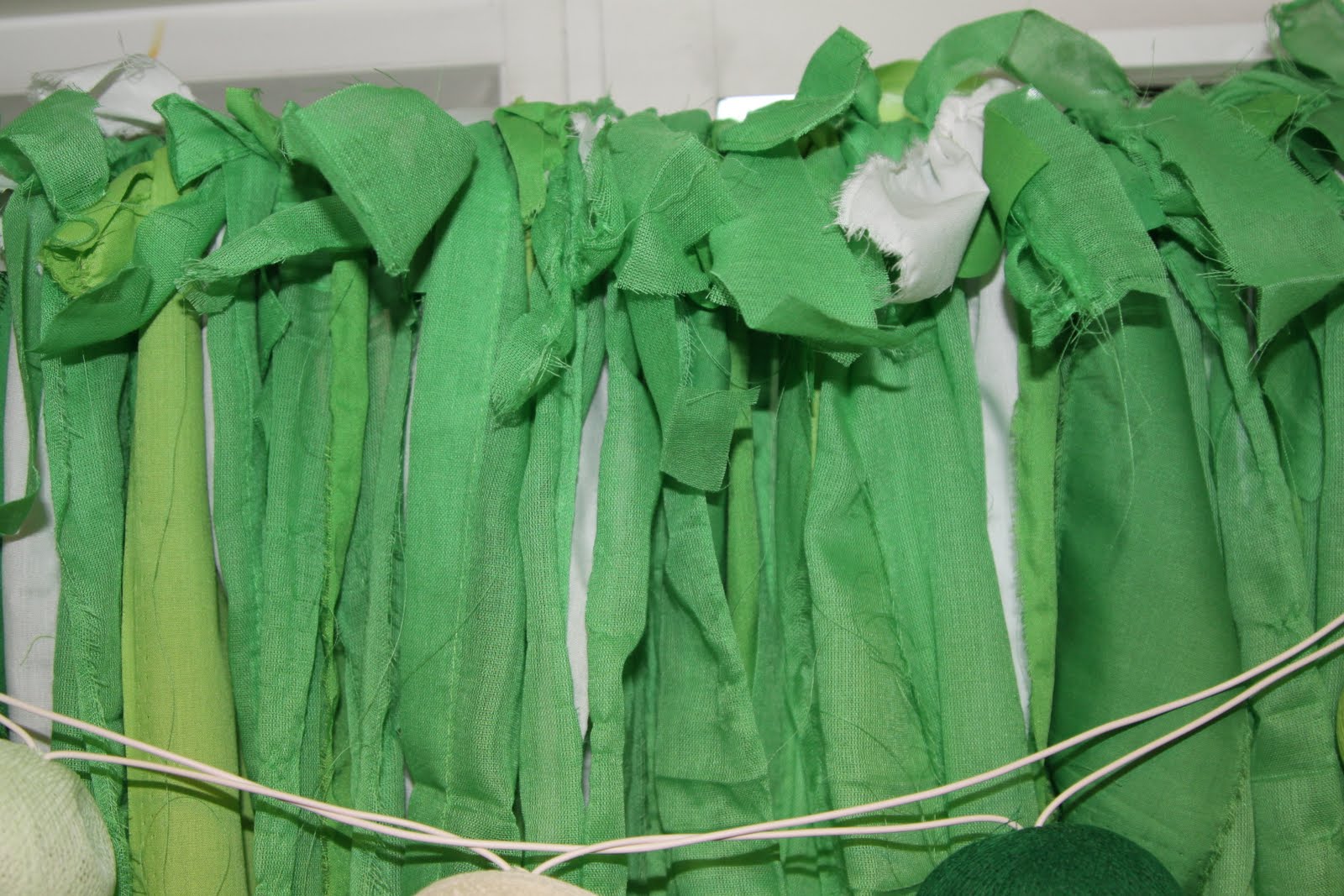 I saw this idea a few years ago in the nursery at my moms church. I am not sure where they got the idea, so I don’t really know who to credit. When I finally got around to the project I tweaked a few things. First, I tore my strips into various lengths (the original was all one length), and I used lots of different colors instead of just one. After tearing all the material, I clipped the top of each piece so I could tie it around the curtain rod. SO simple, just tie on all the strips and arrange how you like! I decided to tie back into sections to still let in some light. These curtains were actually made when I first did Jack’s room, but I had to add more fabric this week because his new room is bigger and the window was wider… So they got a little freshening up!