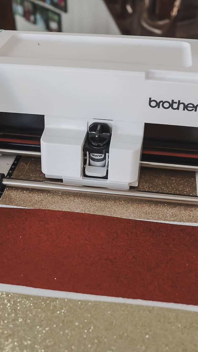 Start by cutting your desired letters from the glitter vinyl. I cut 2″ tall letters {but you can size them any size.} I wish they were a bit bigger… I think 4″ would be perfect. The vinyl cuts really well with the ScanNCut.