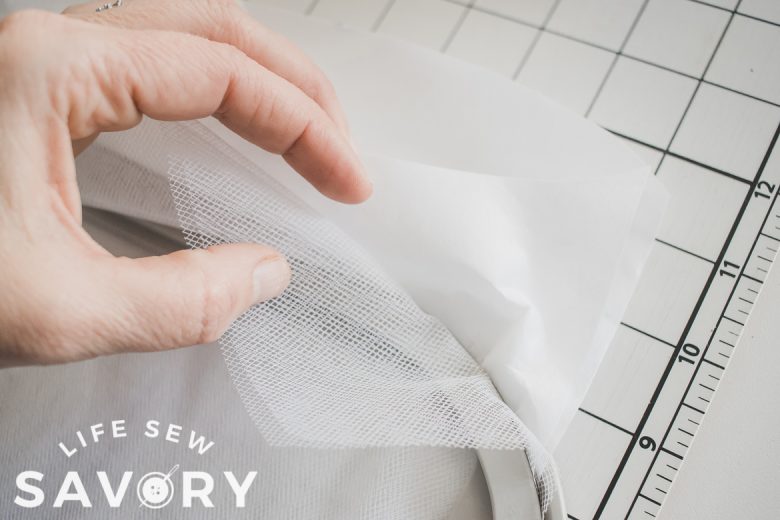First, I put two layers of medium weight tear-away stabilizer and two layers of white mesh together. Both were from my stash so I’m not sure exactly the specifics.