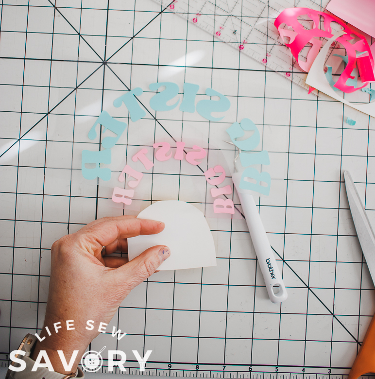 I had so much fun choosing pretty vinyl colors for these sibling shirts. One color I used on both shirts. Did you notice the overlap?