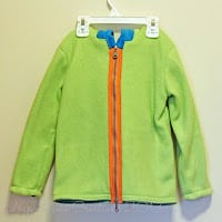 It was also my first time doing an exposed zipper, it turned out great and I love the color! I wasn’t sure what to do with the zipper at the top, so I just added fleece tabs around the top of the zipper on both sides. I also fully lined the jacket to make it warm enough to actually wear for our {not very cold} winter. Fleece on the outside, knit inside, making it a little sticky to put on, but cozy once those little arms are actually in the sleeve. I used this tutorial from the Scrap Shoppe to add the scales to the back of the jacket.
