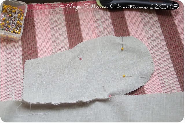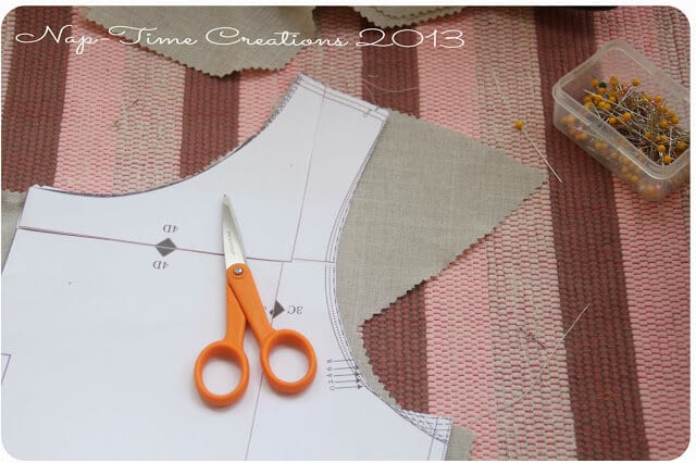 Like Tidy Tipsy I added pockets. Here’s how I did it. Cut a pocket shape..and pin it to the side of the dress. Place it over your shoulders after you have sewed those and see where you want the pocket to be. Sew a pocket {from pin to pin} to the front of the skirt and to the back of the skirt.