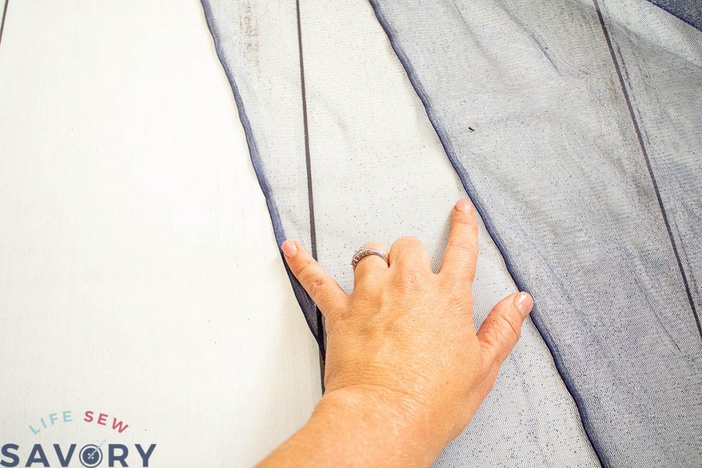You can either sew another basting stitch and use those two thread to gather {need gathering help? See this gathering post for tips} You can also use your serger to easily gather the fabric. Set the stitch length to 2.0 and tighten the thread tension 1-2 numbers higher. Sew the top fold of the fabric and watch it gather.
