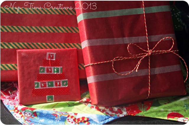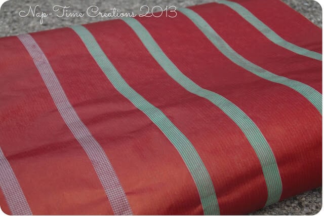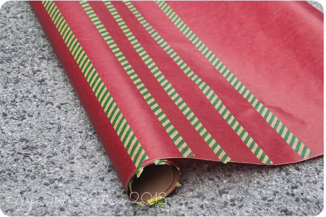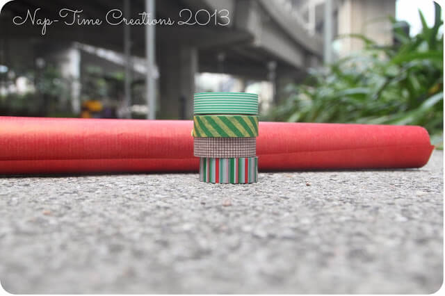 We make homemade wrapping paper every year. Today I’m sharing this years’ version. It’s cute, easy, and won’t break the bank! I bought the plain red paper like a do every year at IKEA. This roll of 9 yrds is only $1.50… so much paper for not very much. So, adding some washi tape embellishments seemed a great way to spruce it up.