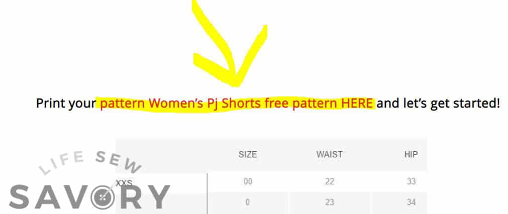 First you need to find a post that says it has a free pattern download. For this tutorial we will use the Loose Knit Shorts Free Pattern from last week. Scroll through the post reading all the pattern details until you come to the shop link for the actual download. It may look like this {red button}{All newer patterns have this}