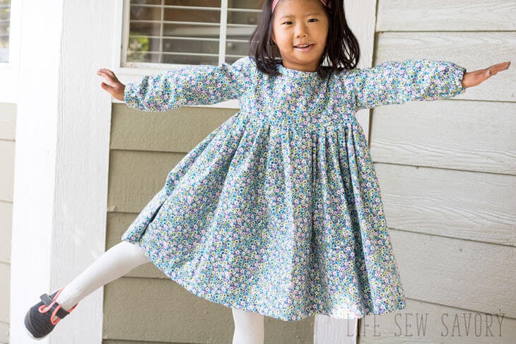 The full pattern download link and photo tutorial are below, but I thought i would show off this cute dress just a bit more before we get to all that! The elbow length sleeves are perfect for fall, and it would be super simple to shorten to cap sleeves if you wanted shorter sleeves as well.