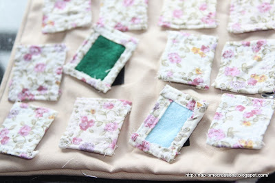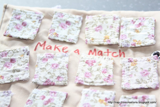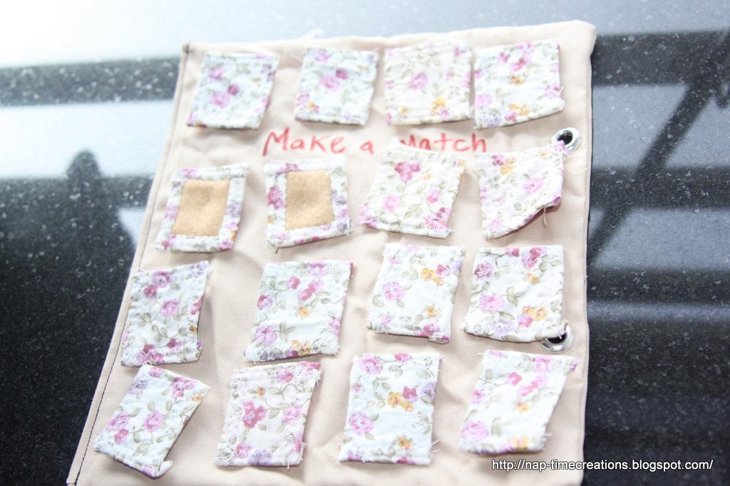 This is on the back of a girl name page for my friends daughter. I used the same idea as my matching game, only this was in miniature.I put the scratch velcro on the main page and the felt sticks right to it.