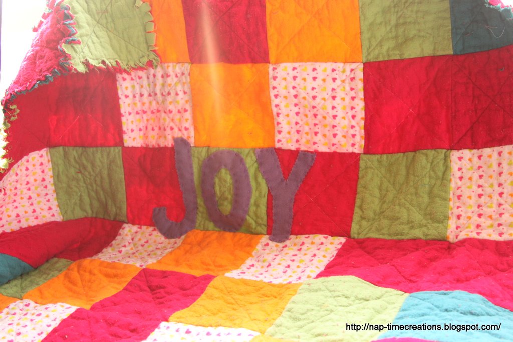 Well of course I love your bright, colored quilt. Great job! I know the baby will enJOY such a nice, soft quilt.