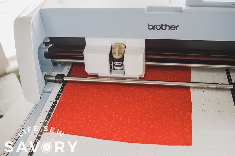I used my high tack fabric mat, and the fabric blade for my machine. Brother has since come out with a newer machine that has a rotary fabric blade, but this one cuts well too.