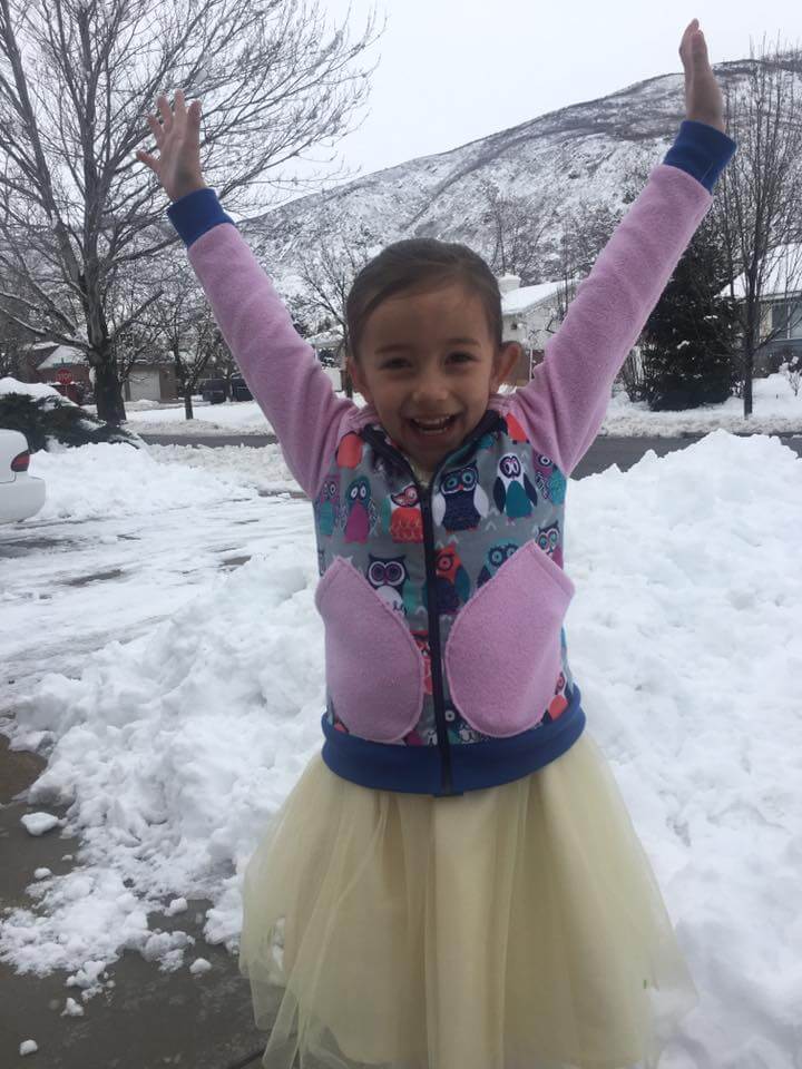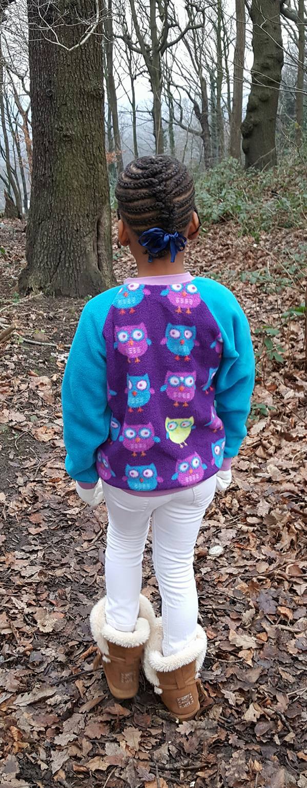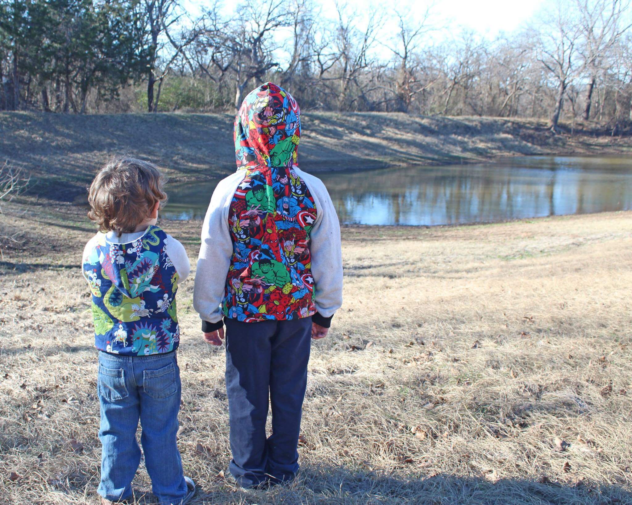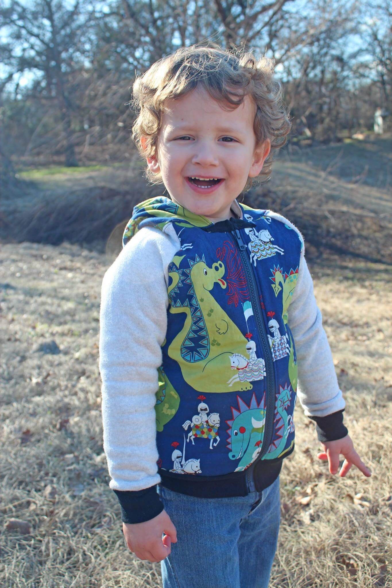 This pattern is made for fleece, sweatshirt knit, or other woven fabrics. Its a fun way to use these fabrics that often aren’t used in kids clothes. Check out all the great inspiration in this post! The pattern comes with a hood or collar option and there are photos for both.