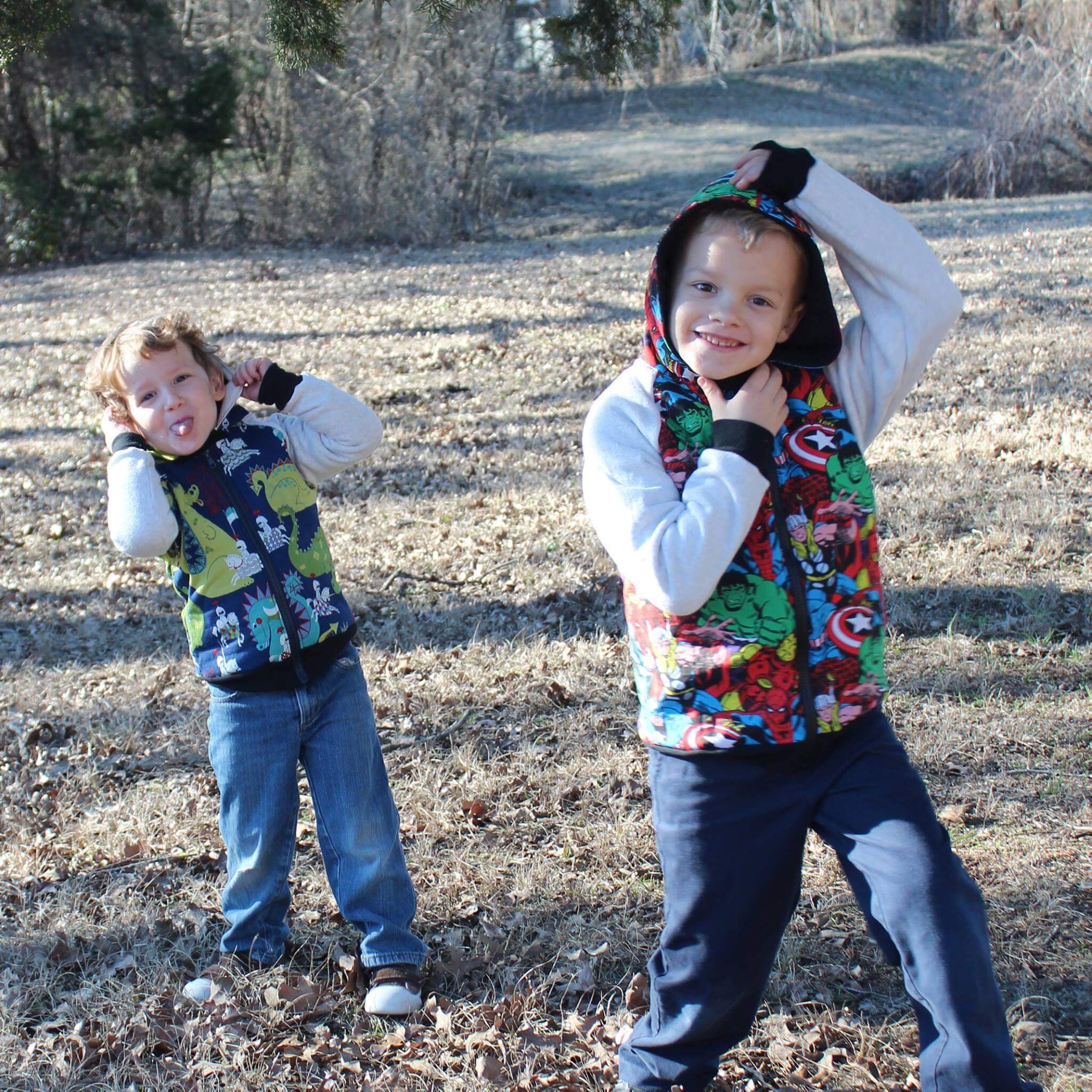 Adorable sibling wear… In sweatshirt fleece for the big boys and cotton layered with fleece for the little one.